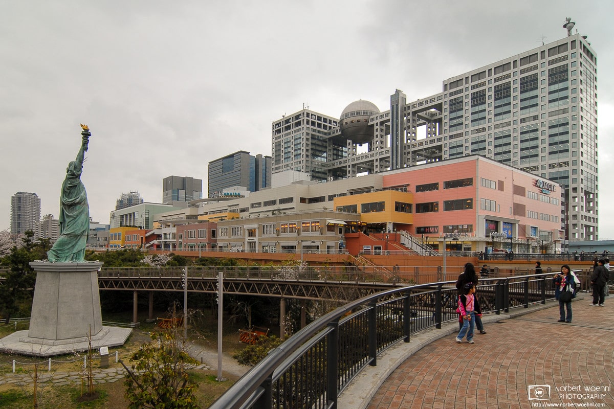 Fuji TV Building and Statue of Liberty, Odaiba, Tokyo, Japan